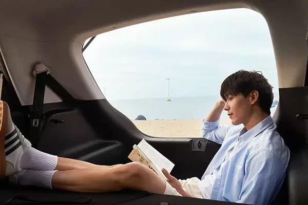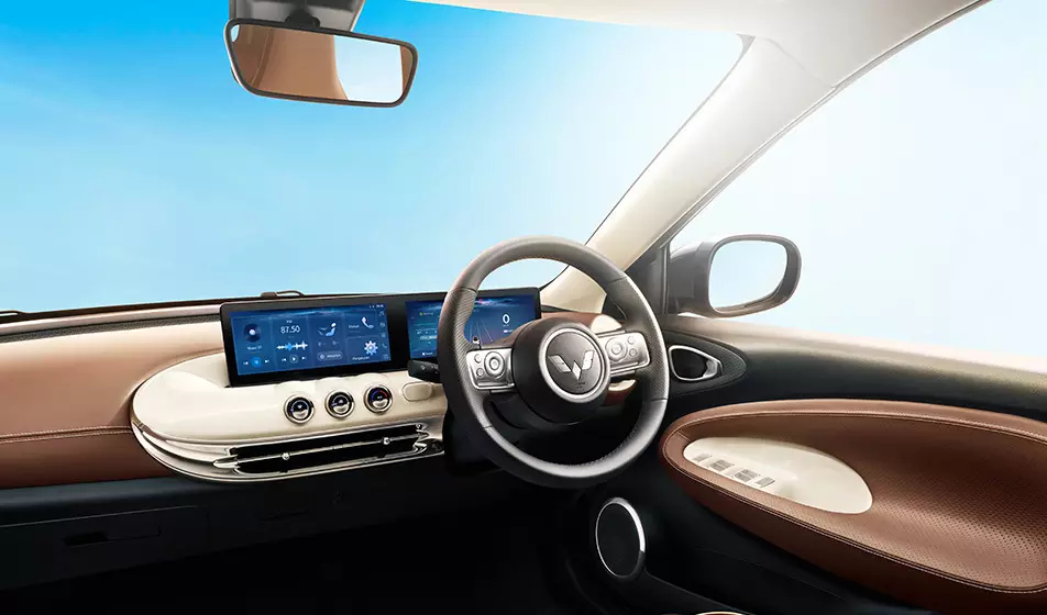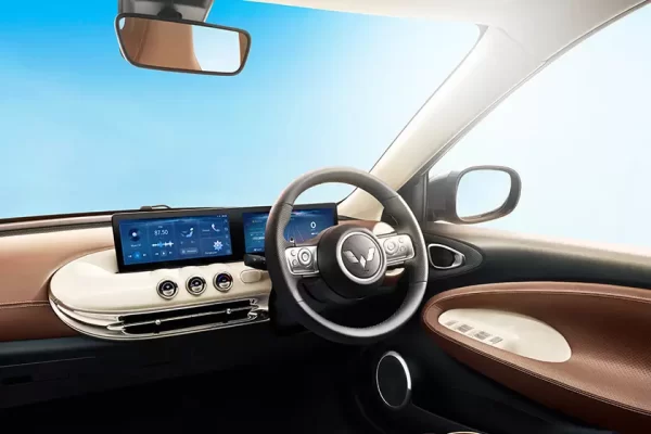 Tampilan dual screens bergaya floating style pada head unit BinguoEV juga menghadirkan tidak hanya tampilan teknologi terkini, namun juga desain berkelas dengan desain retro di sekitar layar berukuran 2 x 10.25 inci dan Electronic AC. Meski terlihat mungil, namun kabin di dalamnya dilengkapi 15 storage untuk berbagai kebutuhan penyimpanan barang penting untuk dibawa bepergian.